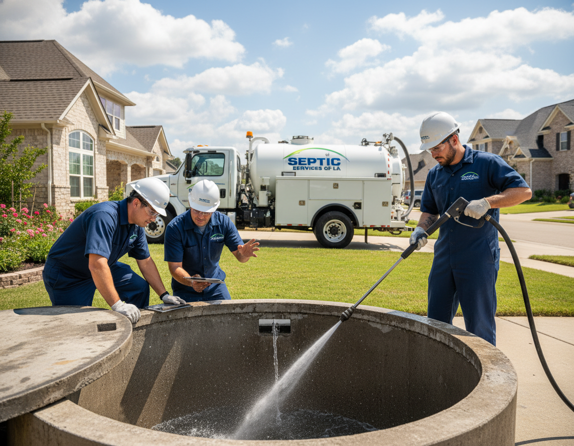 Water use should be limited on service day, and technicians should be told about buried or hidden lids. Septic Services of LA provides preparation guidance and includes a brief system check with every pump-out to improve efficiency.
